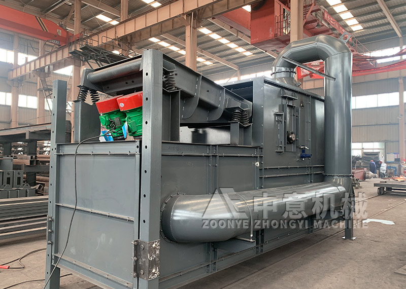 The materials are evenly fed through the vibrating feeder, and the light, small and heavy materials in the materials are separated through precise wind sorting. The light materials are output through the light material discharging conveyor, the dust is separated from the air through dust removal, and the heavy materials settle. on the heavy material discharging conveyor.