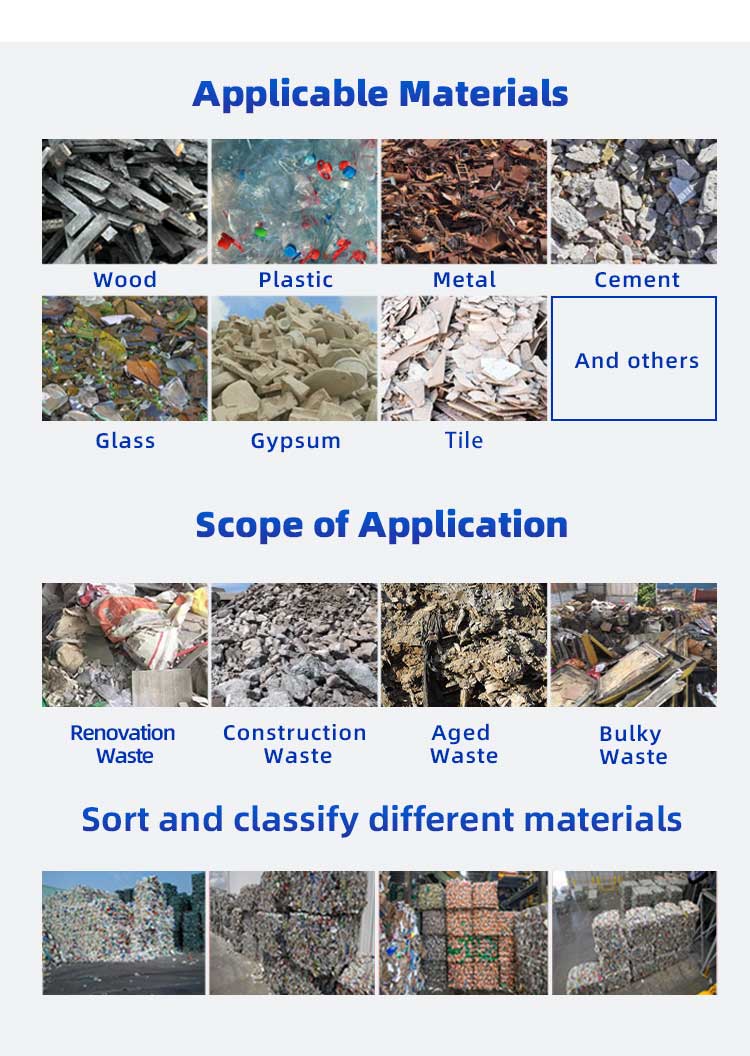 Applicable Materials:construction waste、aged waste、landfilled waste、mixed municipal waste、bulky waste sorting